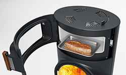 Raumheizvermögen 98 – 255 m³, Innenentaschung, Brennraumbreite 43,2 cm.